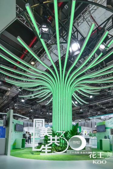 本屆進(jìn)博會上,花王向世界展示“同美共生”的美好愿景,并在現(xiàn)場展館的搭建上別具新意,打造了象征世界萬物和諧和持久生命力的“同美共生之樹”,全方位、多角度、立體化展示花王基于ESG視點不斷展開的實踐活動。在展區(qū)設(shè)置上,圍繞“同美共生”愿景體系下三大重點領(lǐng)域——“和美自然”、“予美生活”、“創(chuàng)美未來”,分別呈現(xiàn)花王在多領(lǐng)域持續(xù)推進(jìn)的創(chuàng)新舉措,為觀眾帶來充滿科技感與前瞻性的創(chuàng)新盛宴。
